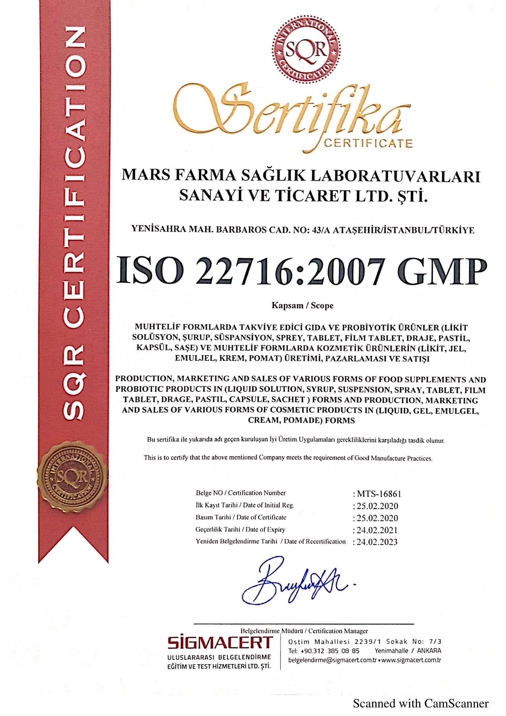We manufacture our products in high-tech production facilities in MARS FARMA HEALTH LABORATORIES, which are included in our corporate structure. We produce natural and effective raw materials that we supply from domestic and abroad by processing them in our facility equipped with high technology.
